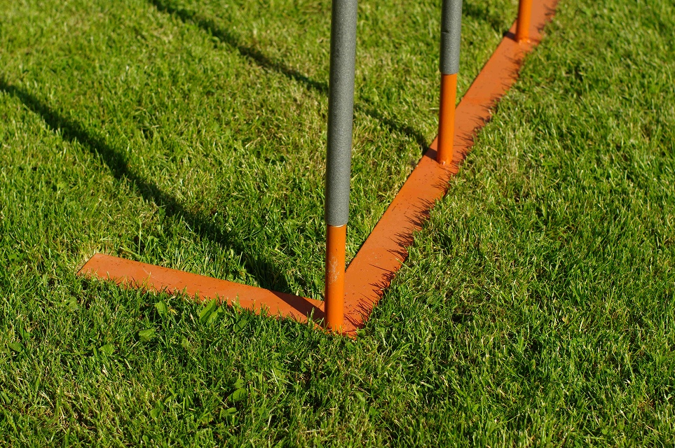 Slalom detail uložení tyče a stabilizační opěry