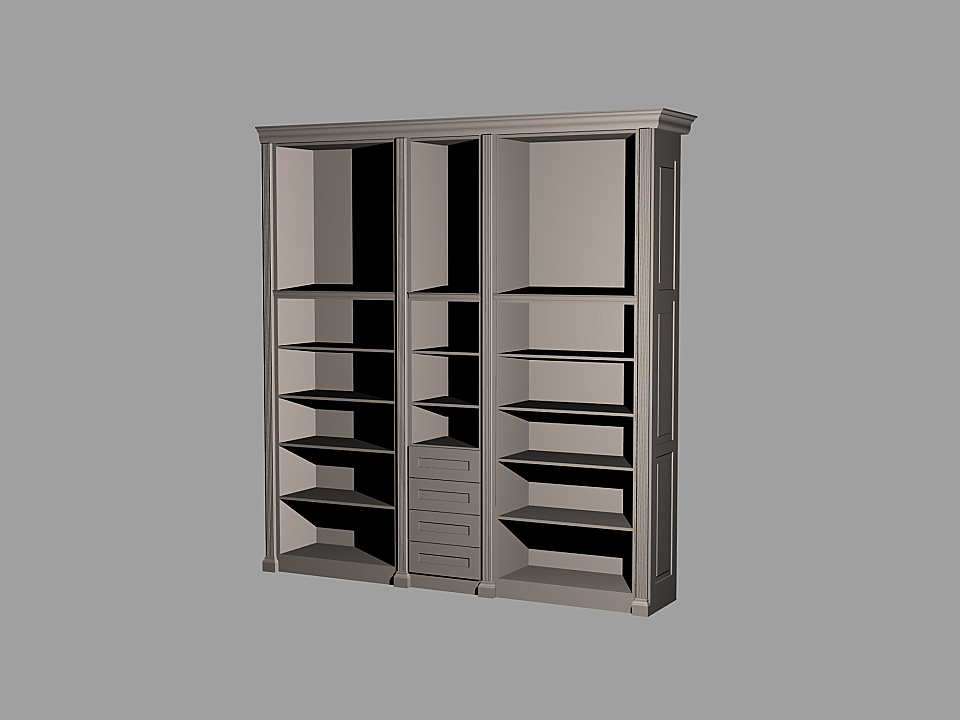 Vizualizace skříně zdobené řezbami